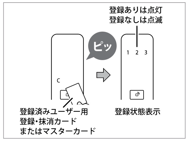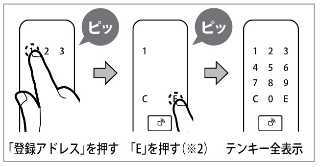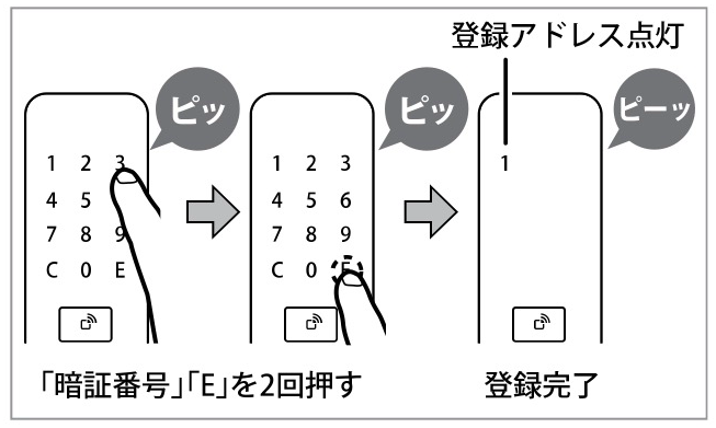 「ピーツ」と鳴り、登録アドレスが点灯すれば、登録完了です。