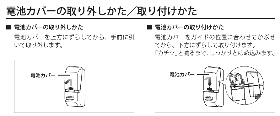 ②解錠状態で電池カバー内の設定ボタンを押します。(短押し)